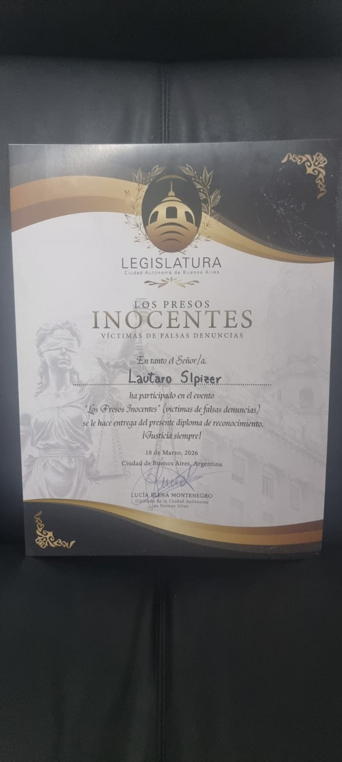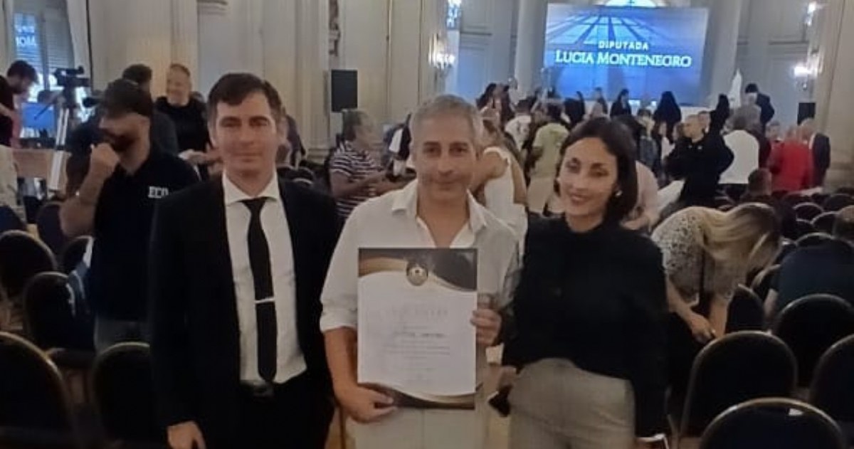 El platense Néstor Santiago fue reconocido en su lucha por las falsas denuncias. La ceremonia y el homenaje fue organizado por la legisladora de la Libertad Avanza Lucia Montenegro.
